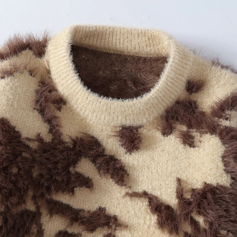 This cashmere blend sweater will wrap you in cloud-like softness while keeping you incredibly warm all season long. The unique fuzzy texture and eye-catching pattern make it a standout piece that elevates any casual outfit instantly. Perfect for cozy coffee dates, relaxed weekends, or anytime you want to feel pampered in premium comfort.